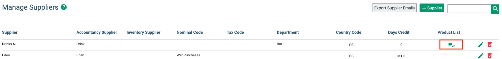 You can now click into the product list directly from the supplier settings list by clicking on the product list icon