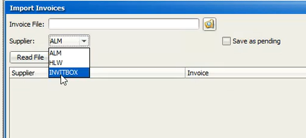 Along the top menu, select the menu - Stock Control > Invoices > Import Invoice File.*