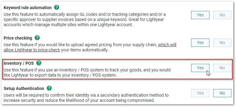 Now that you have enabled the use of inventory exports, we can set up our default settings and how we want Lightyear to treat our inventory data.