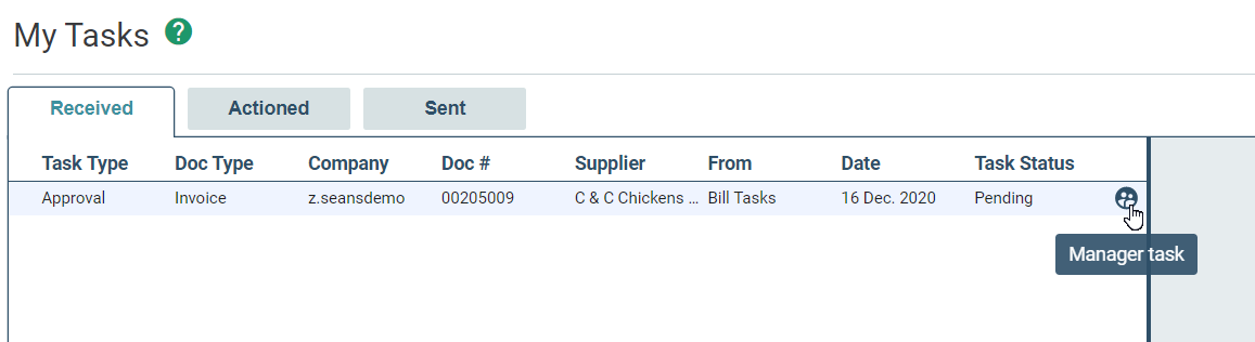 When a secondary task is sent to a Manager, the process to approve is identical to the Bill Task process (