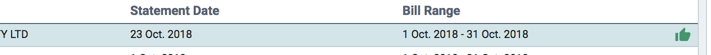Panel 2 - Default view will display the summary information of all Bills with the selected statements date range. Note: Panel 3 will display the statement image by default. If user selects a Bill in panel 2, the image will display the selected Bill, and the data in panel 2 will display the selected Bills details. To return to the Statement view, click 'Statement Detail' in the panel 2 sub-menu