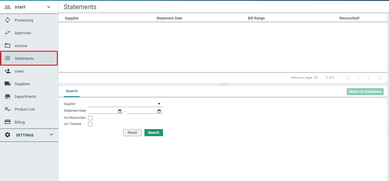 Anything that's marked as a statement will be stored in the Statements Tab, so this is where we'll need to go to view them.
